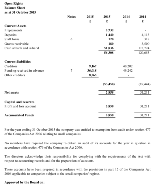 Accountants’ Report to the Directors of Open Rights